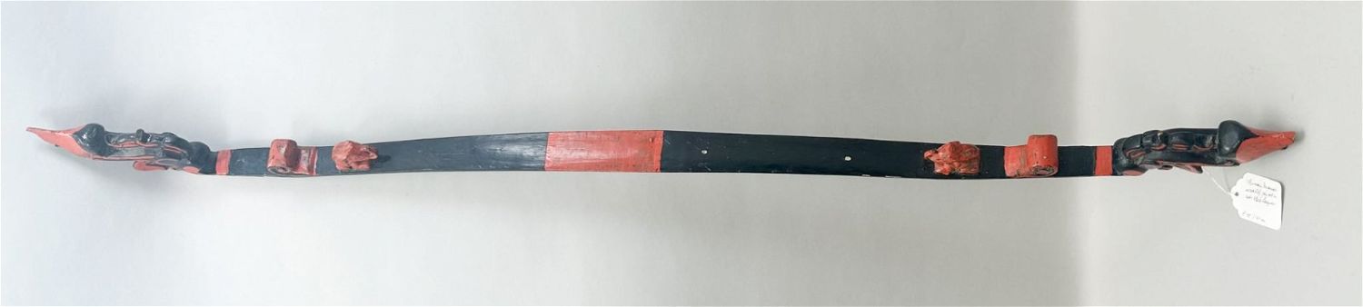 Burma, Myanmar, red and black lacquer painted carrying pole with carved elephants on each end, 47"l