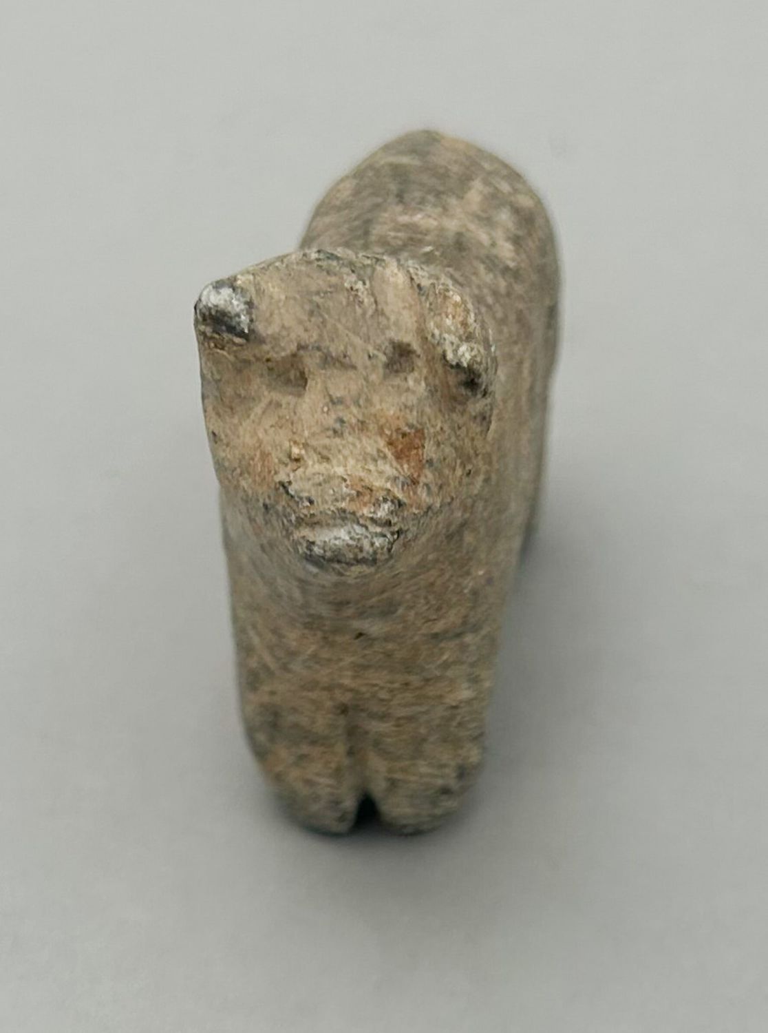 Vintage sandstone statue depicting dog-like animal, 2.25"h x 3"w x 1"d