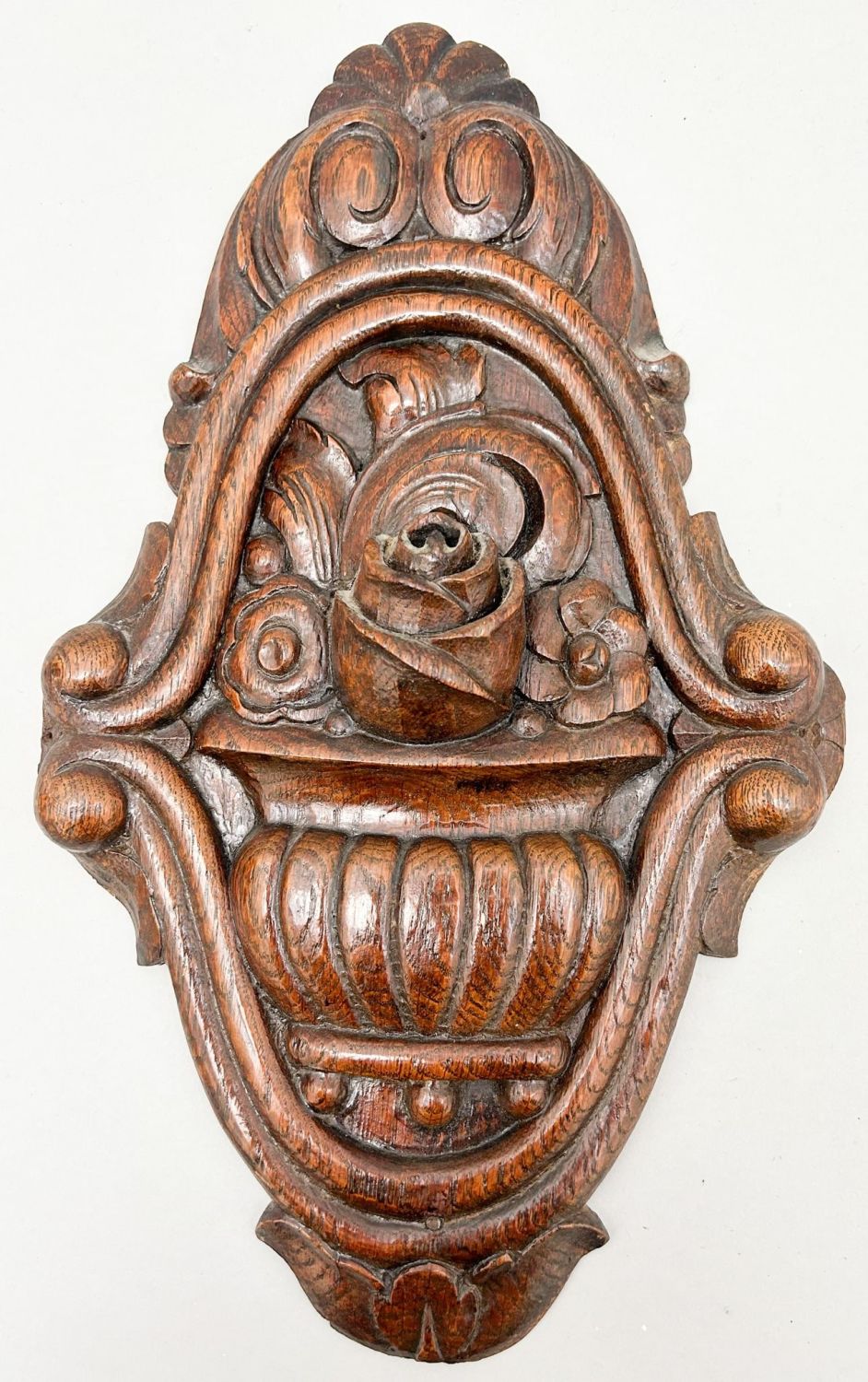 Vintage carved wooden wall ornament, 14"l x 8"w Condition: Good, some sctraches, surface dust
