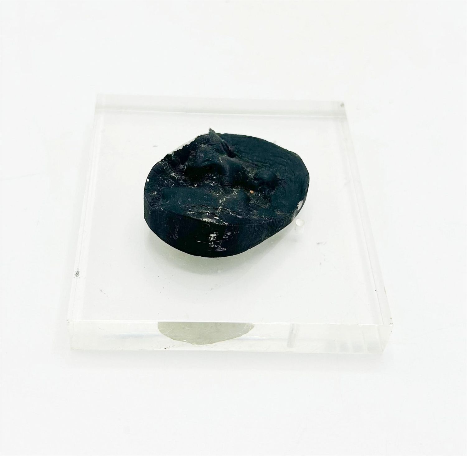 Modern miniature sculpture mounted on plexiglass frame, unsigned, frame size 0.5"h x 3.25"w x 3.0"d and sculpture size 0.5"h x 1.75"w x 1.75"d