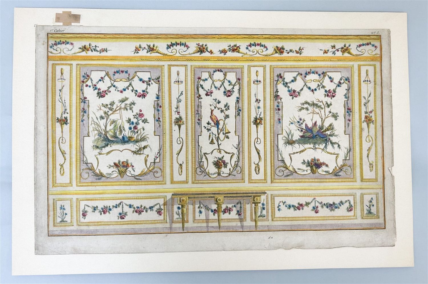 French Classical Style Miniature Wallpaper, signed by V. Cahier, 20.5"l x 14"w