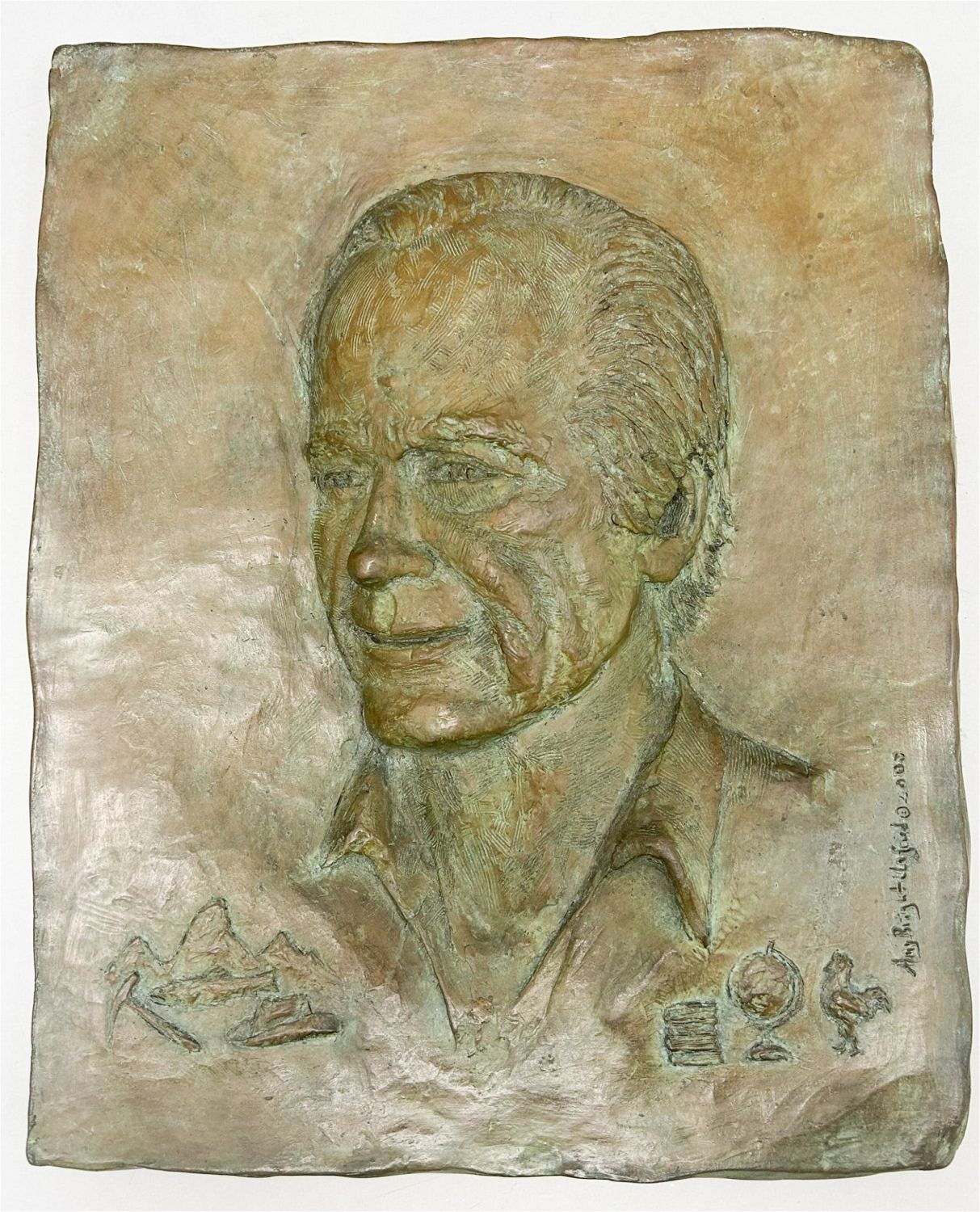 Helmut Wenske Style wall panel of a man portrait tableaux, illegibly signed 2007, 16"h x 13"w x 1.5"d Condition: Good
