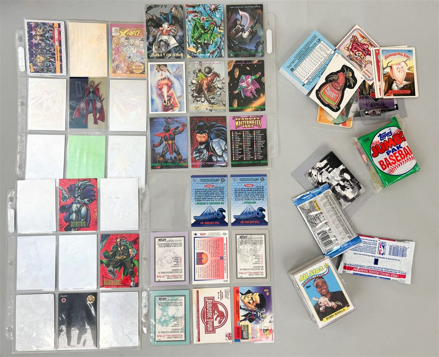 36 Nonsports holograms, 1990 baseball jumbo topps, 1990-91 NBA wax pack possible Jordan, over 80 baseball crads 1960 Rooki Star Art Mahaffey, Jordan basketball and Manning football cards, Beatles card 1993