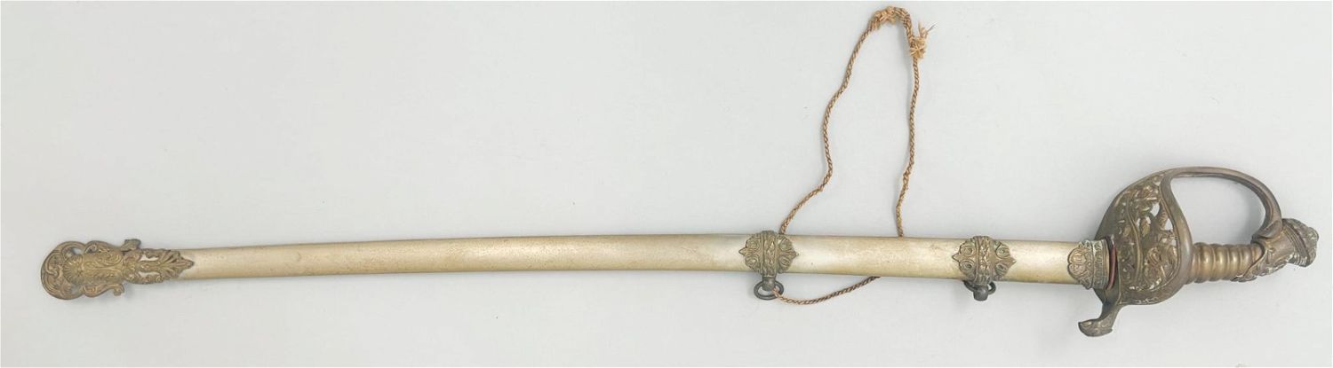 US Staff and Field Officer`s sword, marked by W. Clauburg of Solingen, Presented to a Captain in 54th New York Infantry Regiment, Please view pictures of scabbard for Presentation engravings, sheath size 33.75"l, sword size 38.5"l