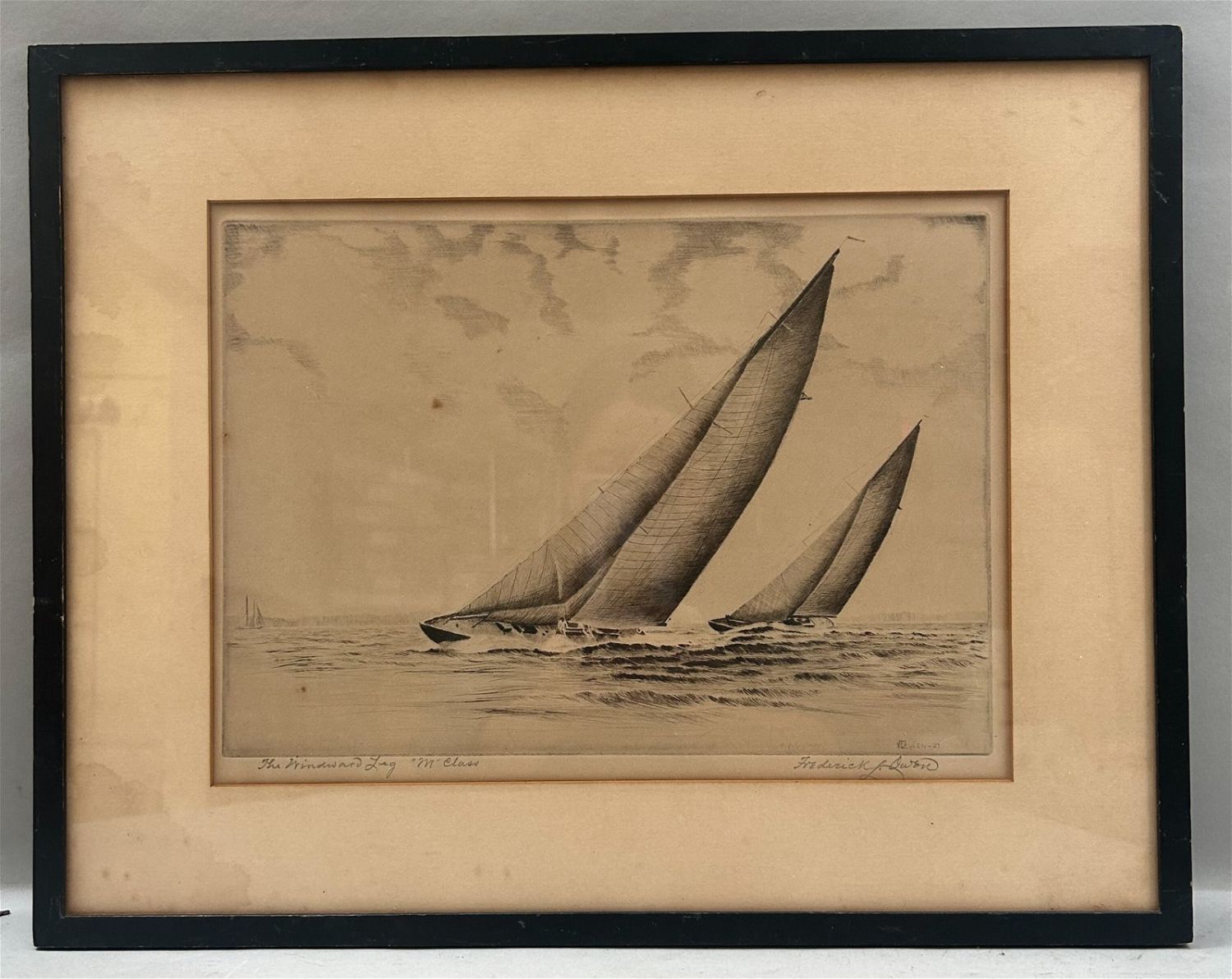Pencil etching, original signed and titled by Frederic L. Owen, frame size 15"l x 18.75"w and sight size 9.5"l x 13"w