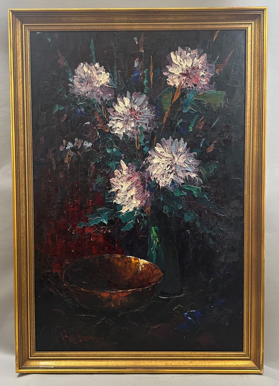 Impressionist Floral Painting of Oil on Canvas, illegibly signed, frame size 39.25"l x 27.5"w and sight size 35"l x 27.5"w