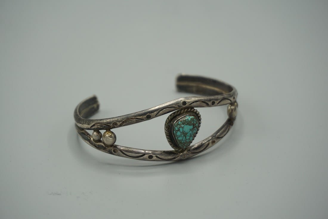 Sterling Silver Open Bangle Bracelet with Turquise Stone