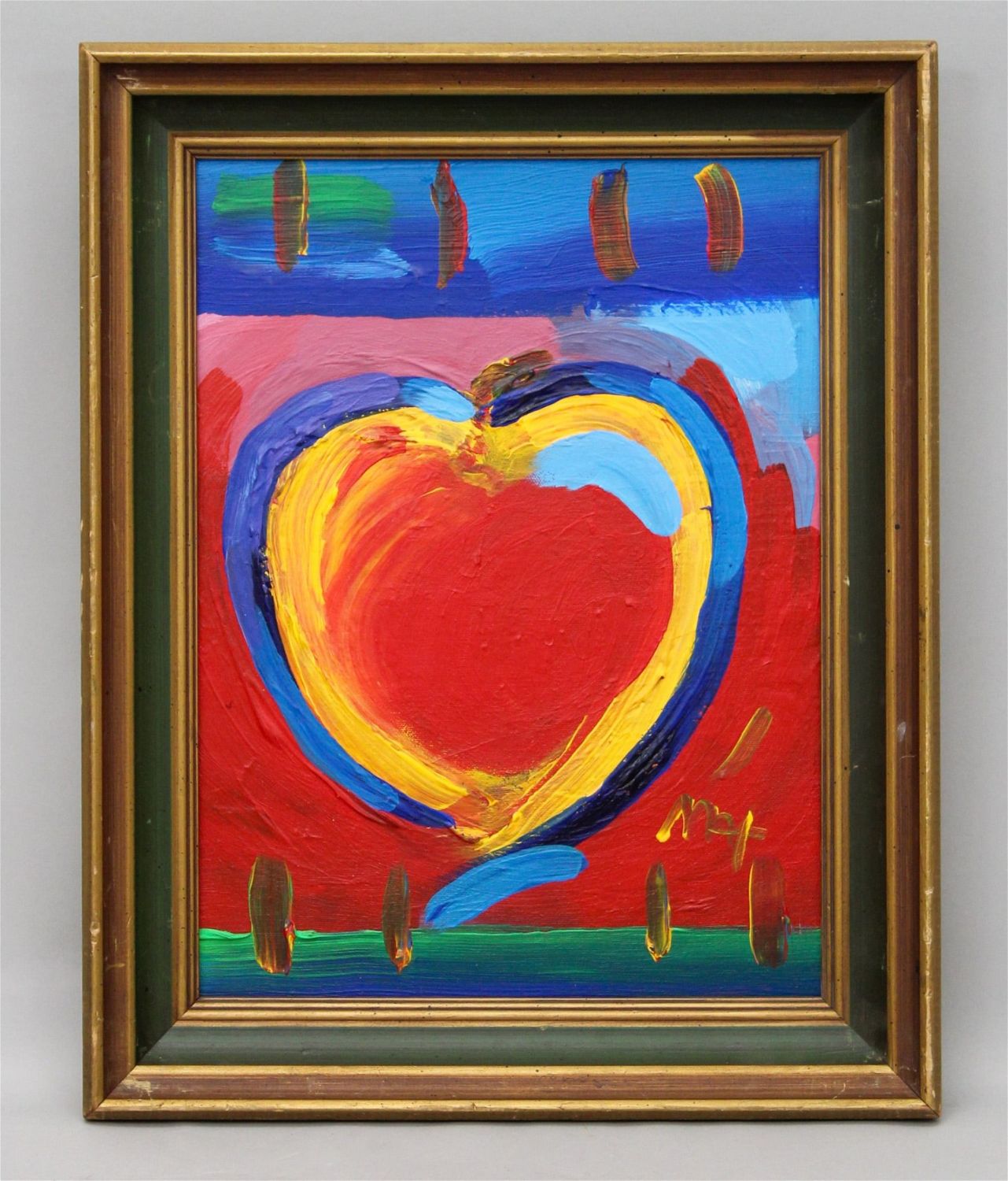 Peter Max mixed media acrylic on canvas "Angel Heart 2000" with COA from Park West Gallery, signed lower right, label on verso Peter Max Heart 34187, 16"h x 12"w (sight), 19.5"h x 15.25"w x 3"d (frame)