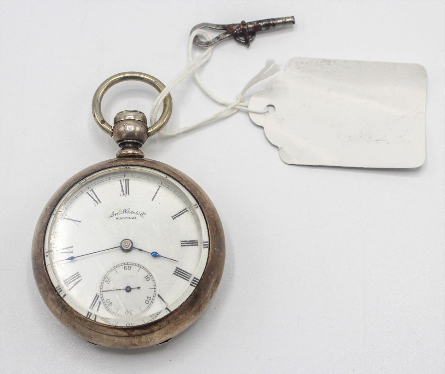 Antique, 1,887 Am Watch Co. Waltham coin silver pocket watch with winning key, marked inside Fahys Junior Coin C5616, serial # on movement 3532764, 167 g/5.37 t.oz, 2"d