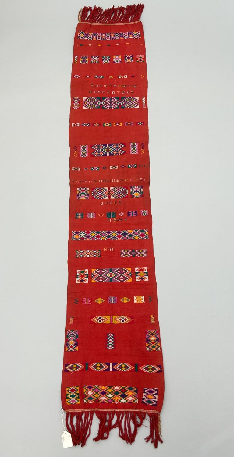Timor, Indonesia, vintage cayenne color cotton textile with traditional pattern, 56" x 11"w Condition: Good, signs of wear and age