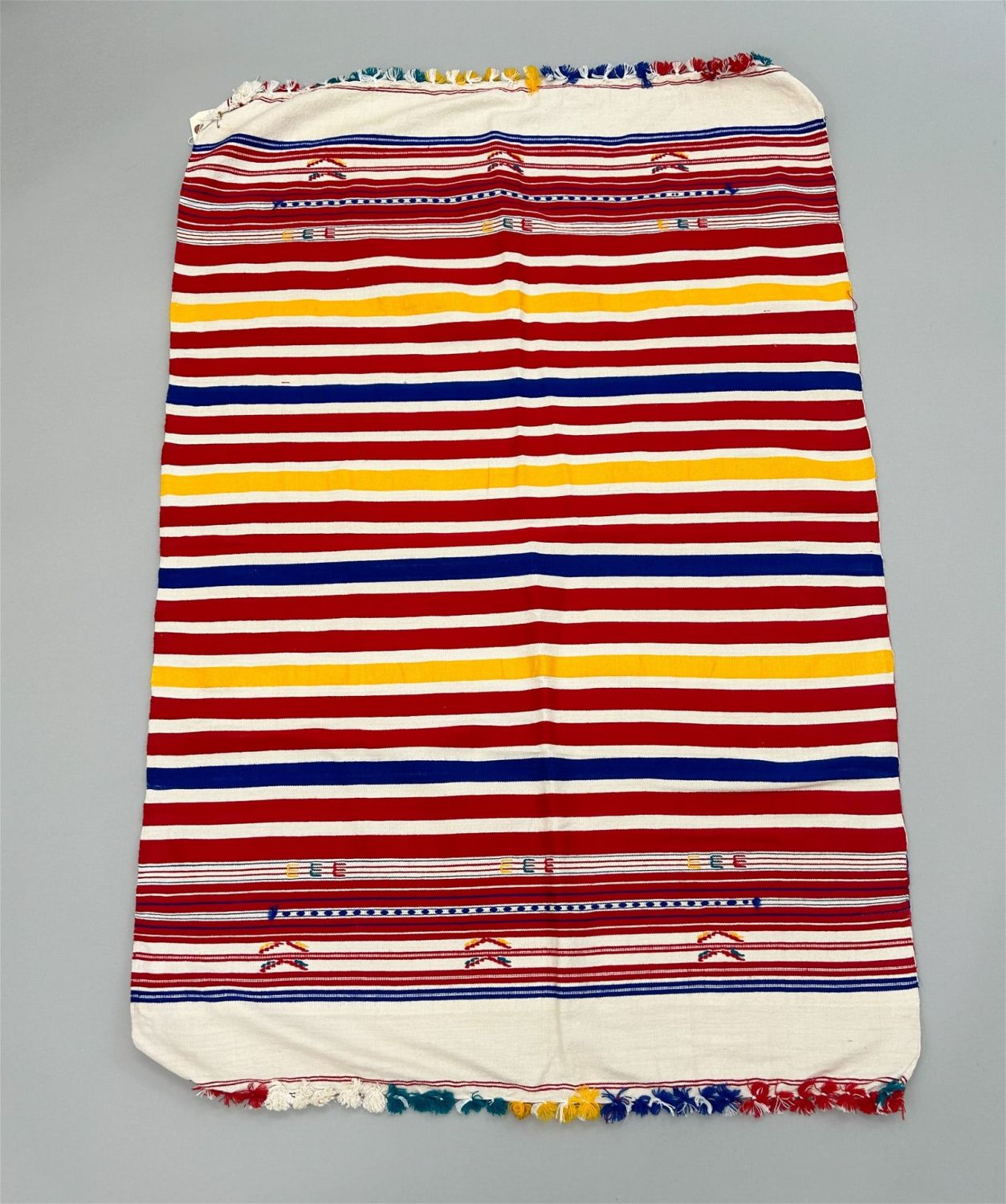 Morocco, vintage woven cotton textile with vibrant multicolor stripes pattern, 48"l x 32"w