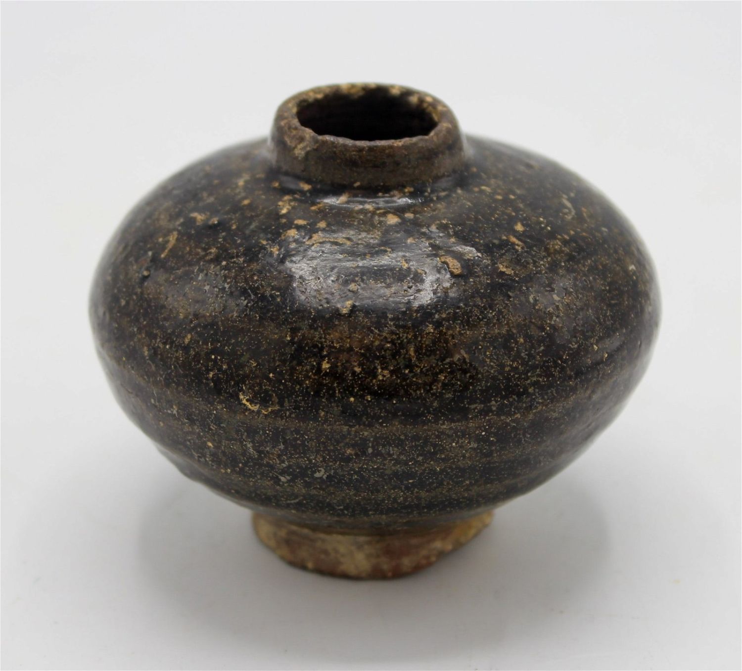Antique Chinese possibly Song Dynasty small glazed ceramic vessel, unmarked, 2.5"h x 3"d