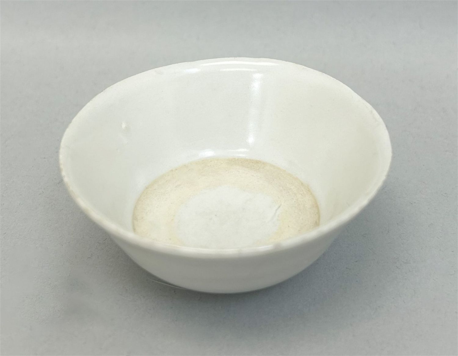 Possibly Korean, possibly antique, white cermaic sake cup, unmarked, 1"h x 2.5"d