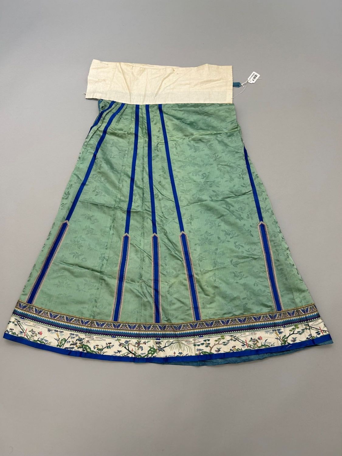 A multicolored silk-mostly green colored apron embroidered skirt, qing dynasty, late 19th century, 38"length x 38"waist x 74"hem