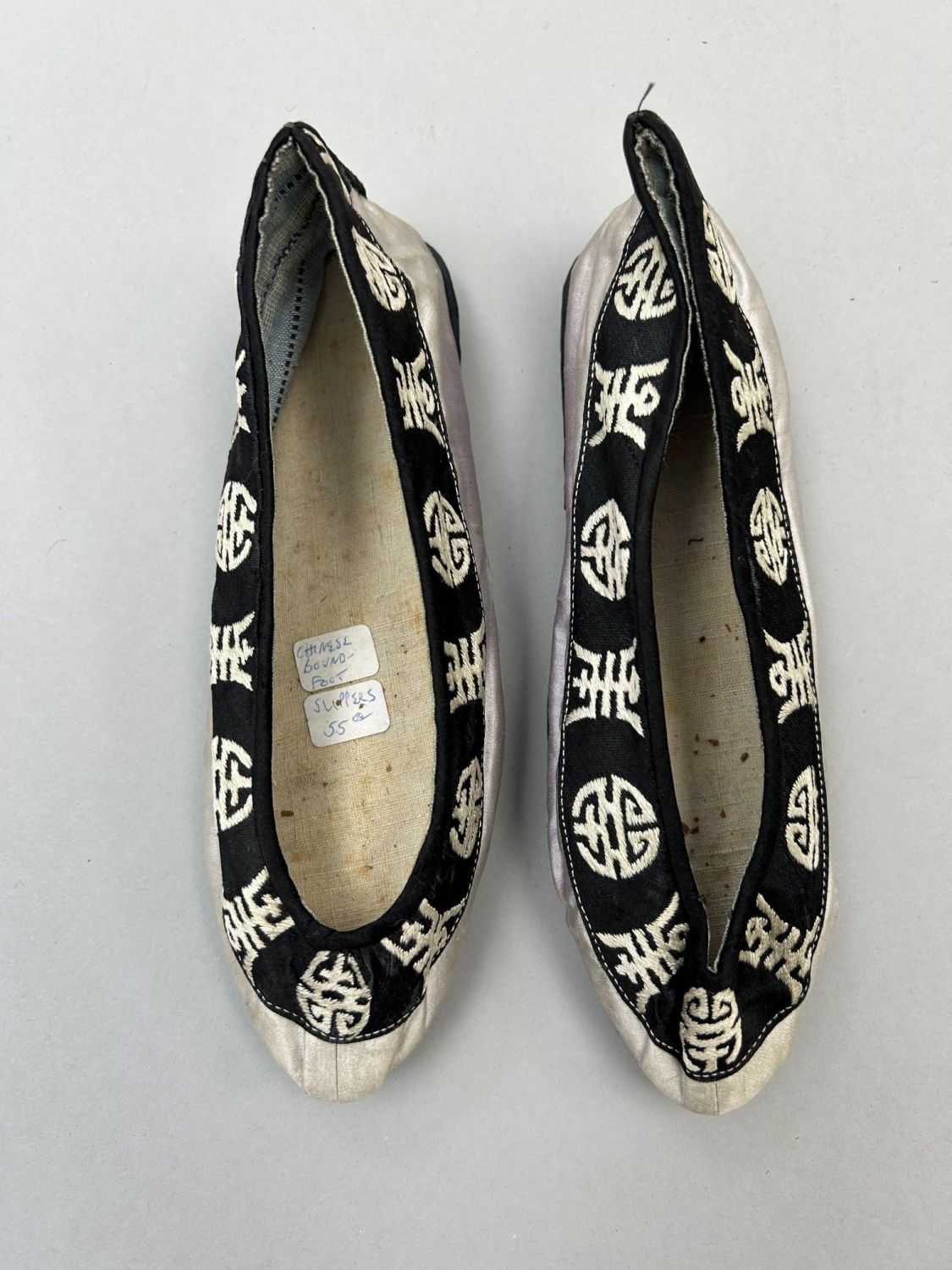 A pair of embroidered silk shoes, Qing Dynasty, 19th century, 8"length x 3"width