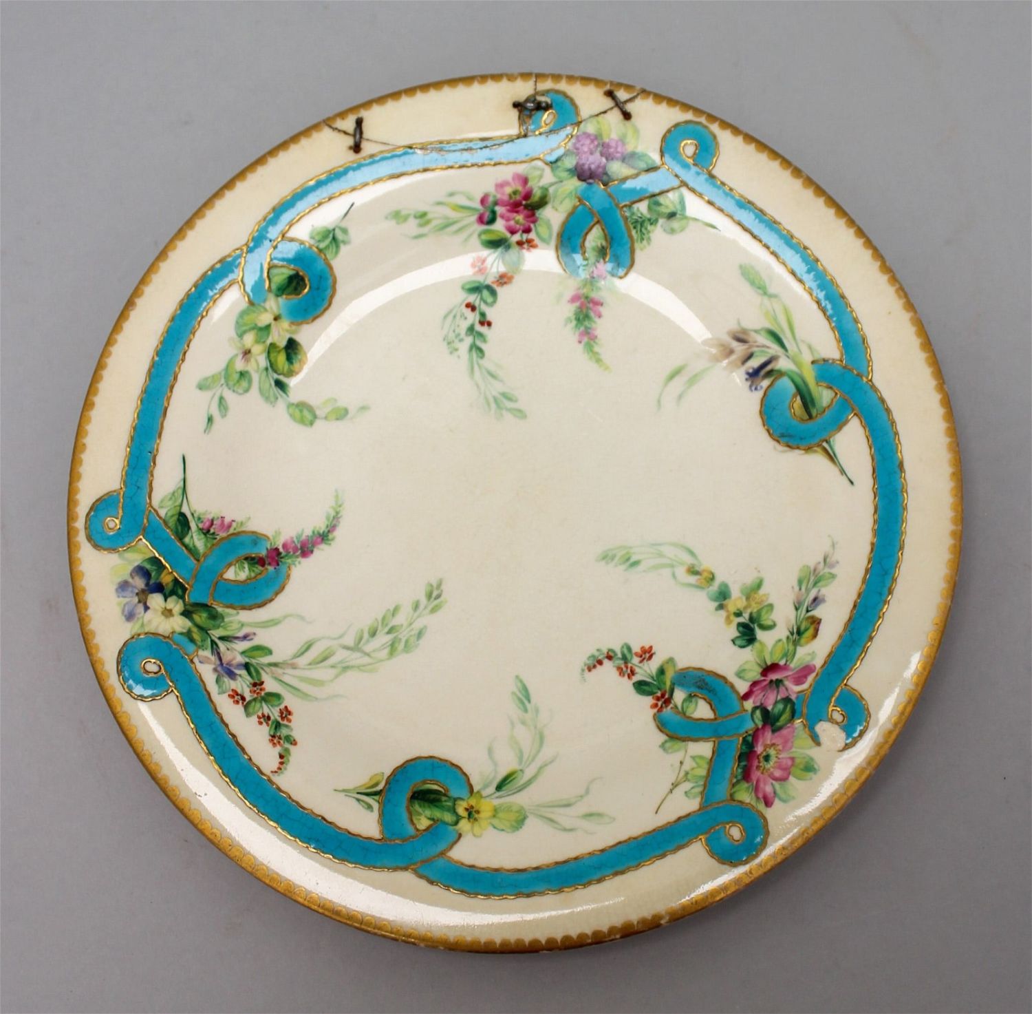 Condition: Fair, signs of repair, surface yellowish, some chip on the border, slight cracks, some gilt discoloration ont the border