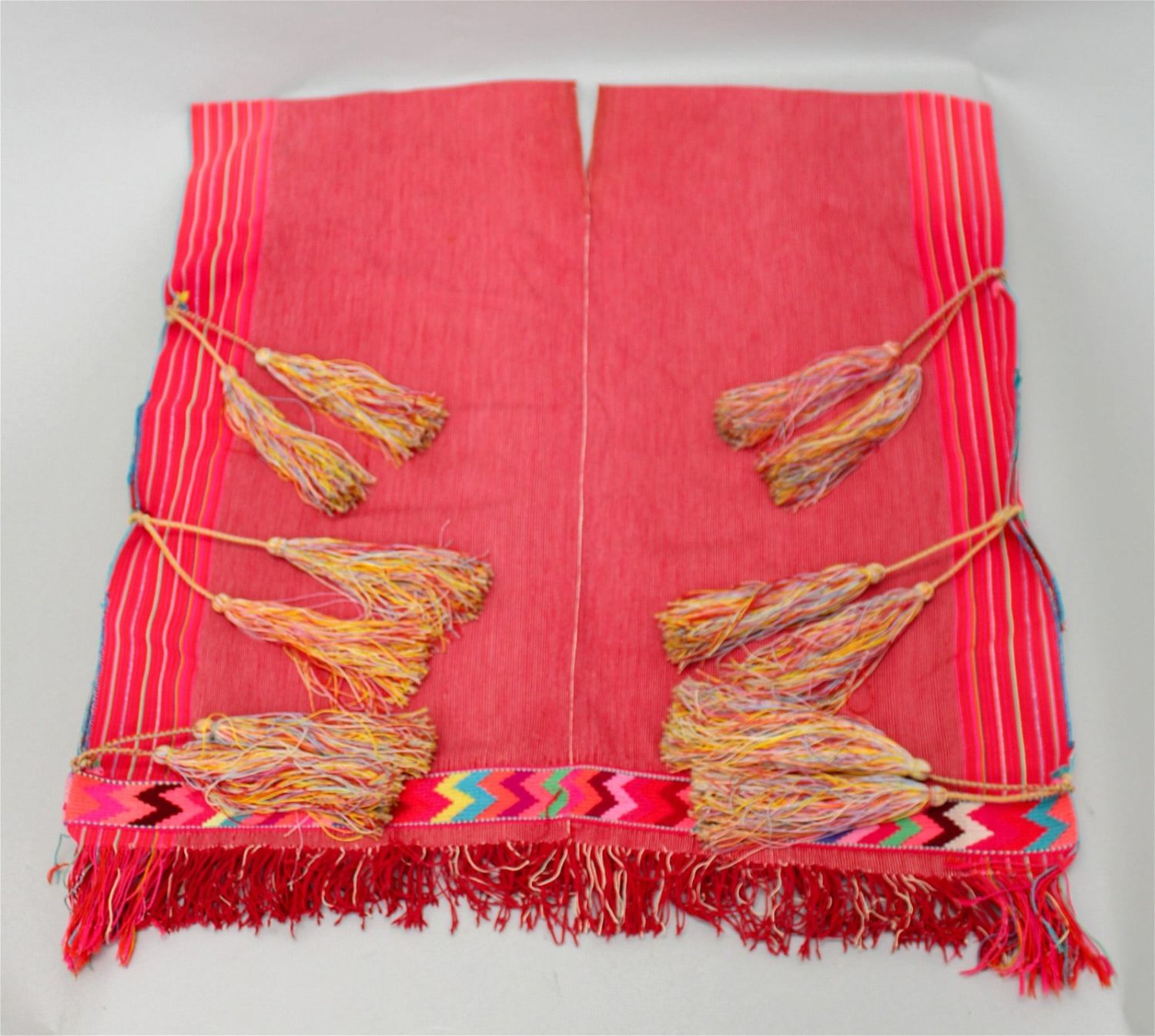 Chiapas, Mexico, vintage woven cotton "Huipil" tunic with tassels, stripes and traditional patttern, 27"l x 26"w Condition: Good