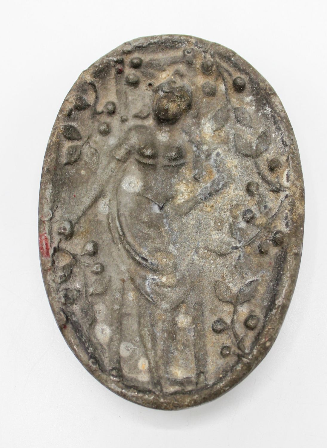 Vintage cast iron risque ashtray, unmarked, 1"h x 5"w x 3.5"d Condition: Fair, some tarnish, minor rust spots