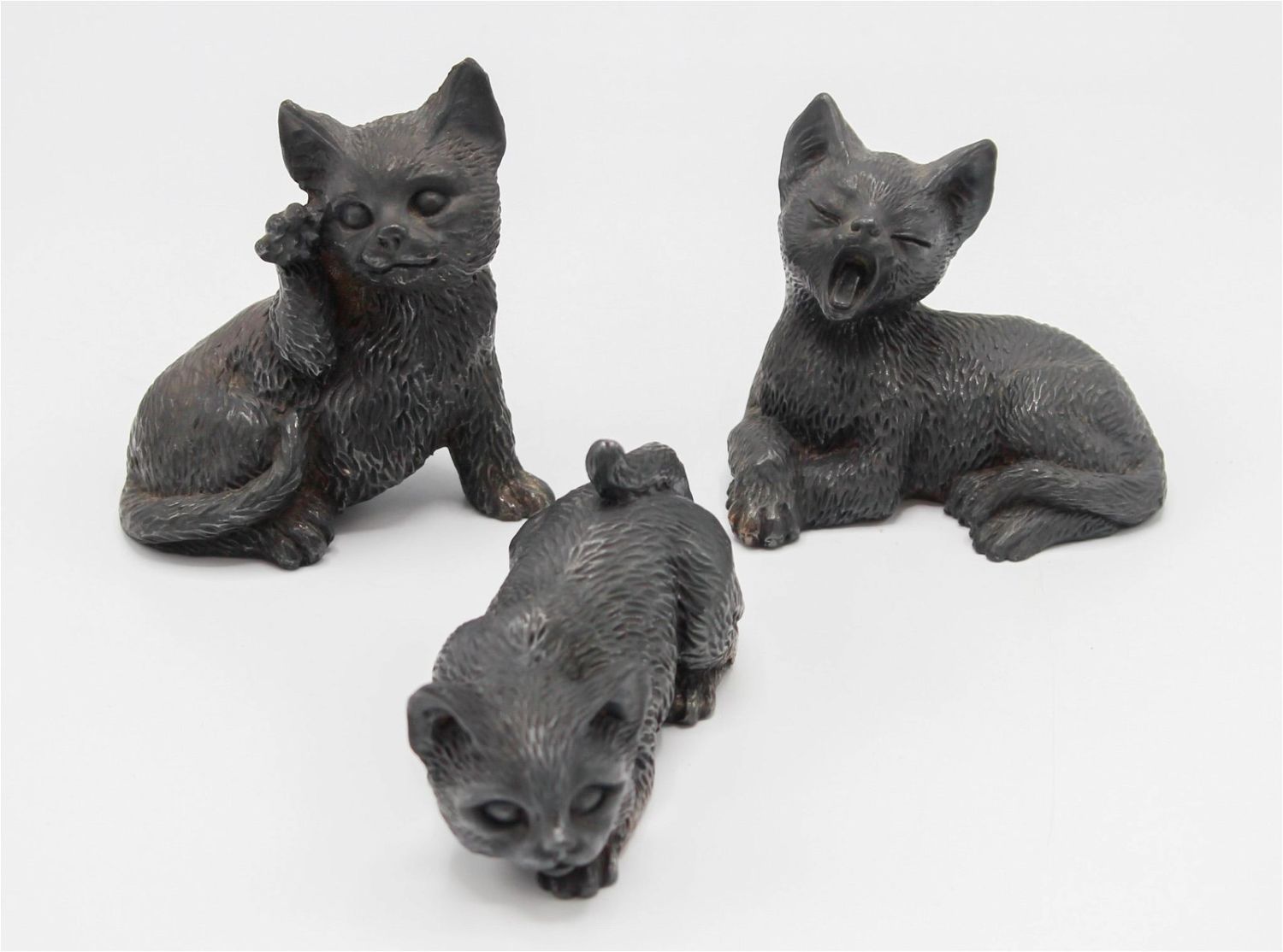 Group of (3) vintage weighted sterling silver black cats, mark on bottom Made in Italy, RGR 10 *871F1, 925, approx. 459 g./14.76 t. oz, 3.5"H x 3"l, 2"h x 4.25"l, 2.75"h x 3.25"l