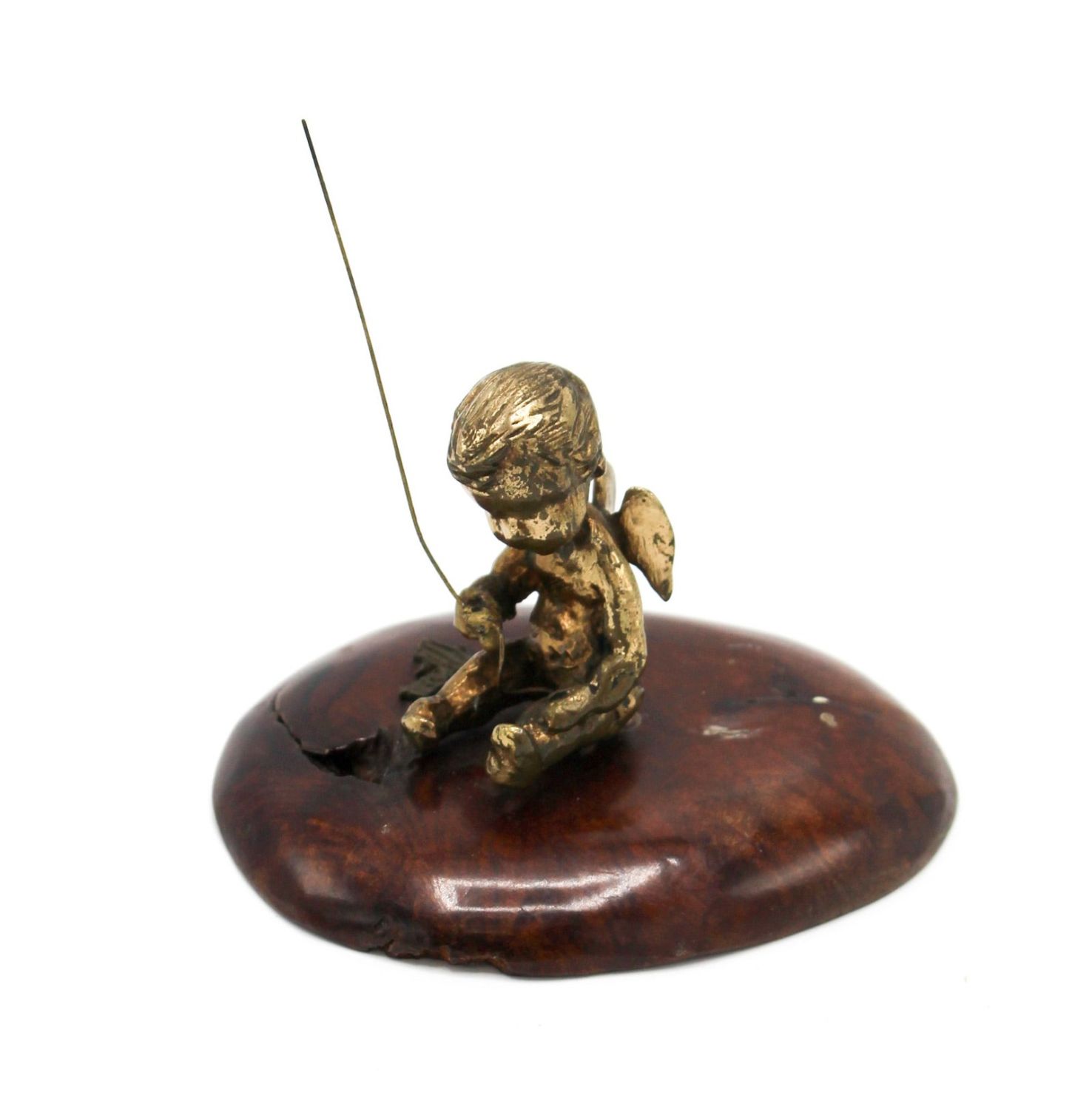 Vintage Carole Stupell Bronze Putti Figurine Seated on Wood Specimen