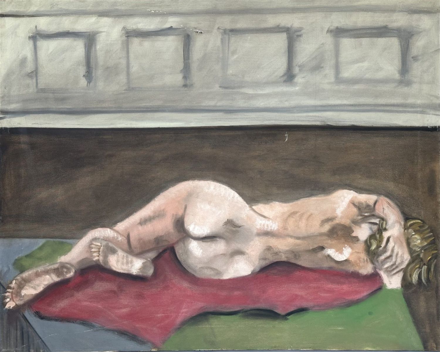 Oil on canvas. Signed verso. Sight: 24" x 30" Condition: Good. Couple losses. One hole.