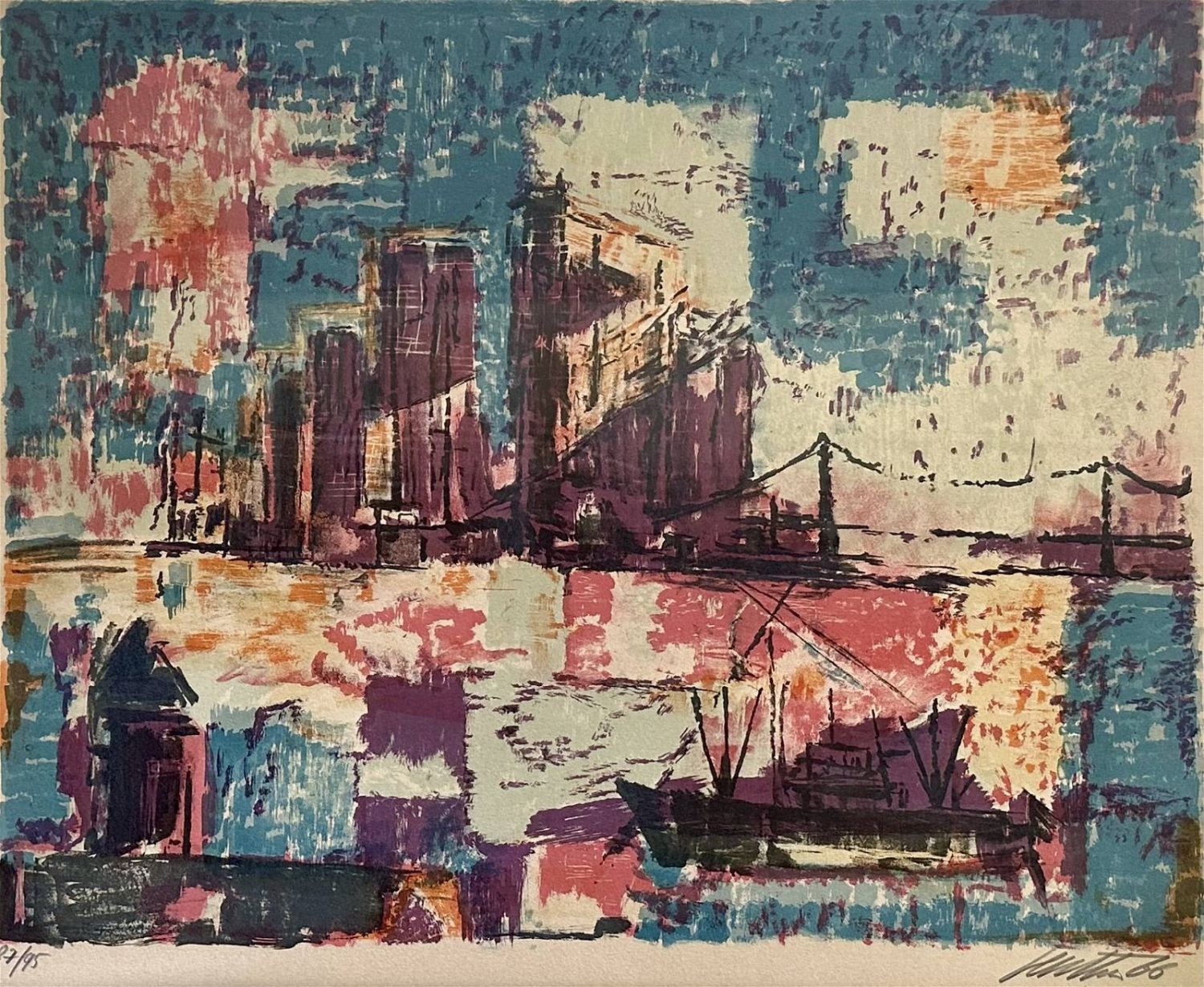 Limited edition lithograph. Illegibly signed/dated in pencil. Sight: 20" x 24" Frame: 28" x 36" Condition: Light fading overal and foxing mottling to the matte.