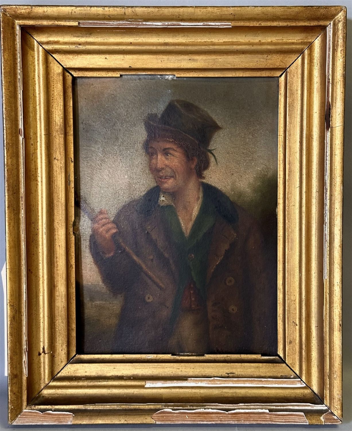Oil on Board – Signed Illegibly Lower Left in Red. Sight 10" x 7.75" Frame: 13.5" x 11" Condition: Good. Tight paint. A fine painting. Frame is chippy, with losses to gilt gold throughout.