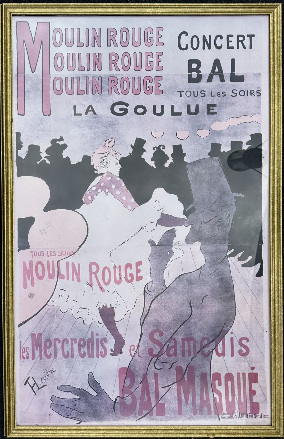 Vintage Huge 58" TOULOUSE LAUTREC Moulin Rouge Concert Bal Lithograph Poster