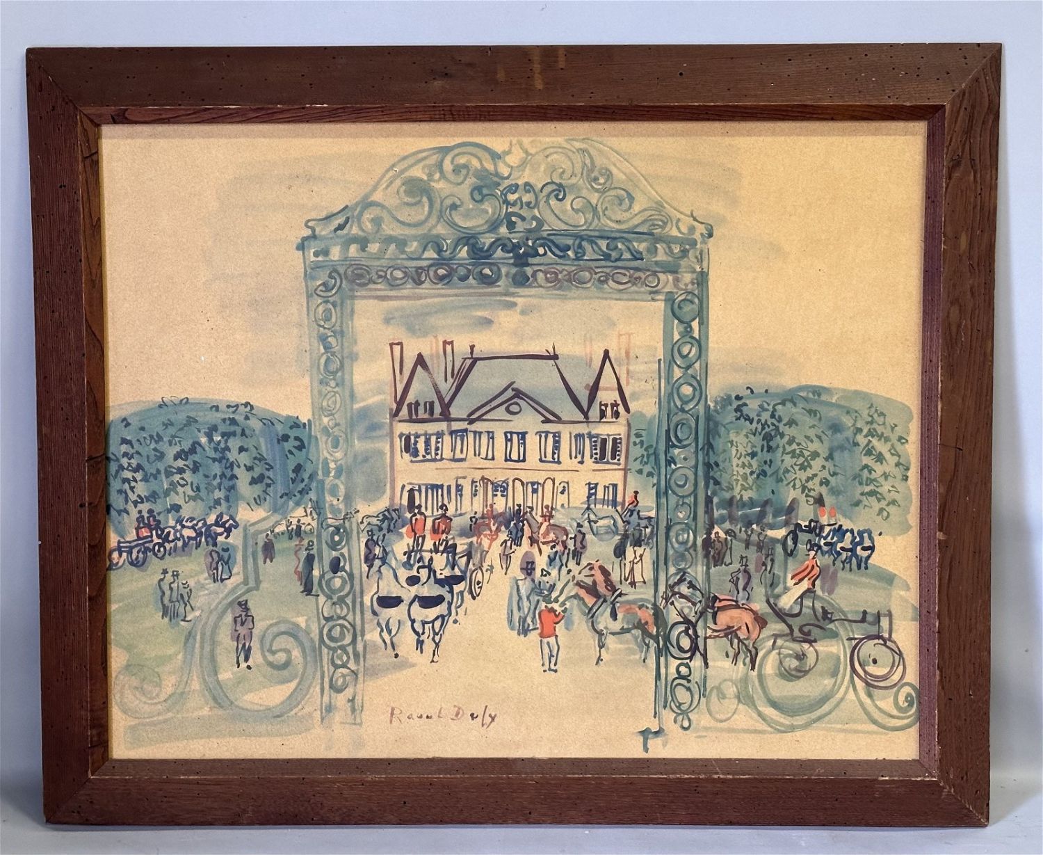 Lithograph on paper. Signed in plate: Raoul Dufy. Sight: 22" x 28" Frame: 27" x 33" Condition: Fading, yellowing, light frame wear.