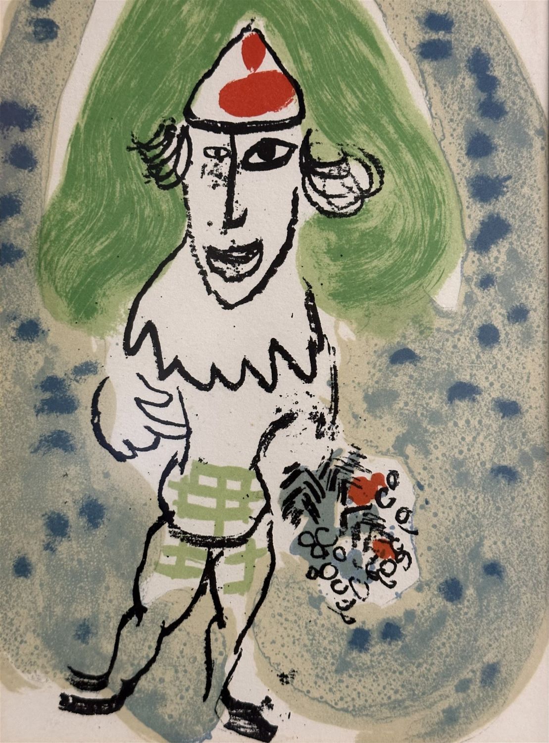 After MARC CHAGALL "The Green Clown" with Flowers Lithograph