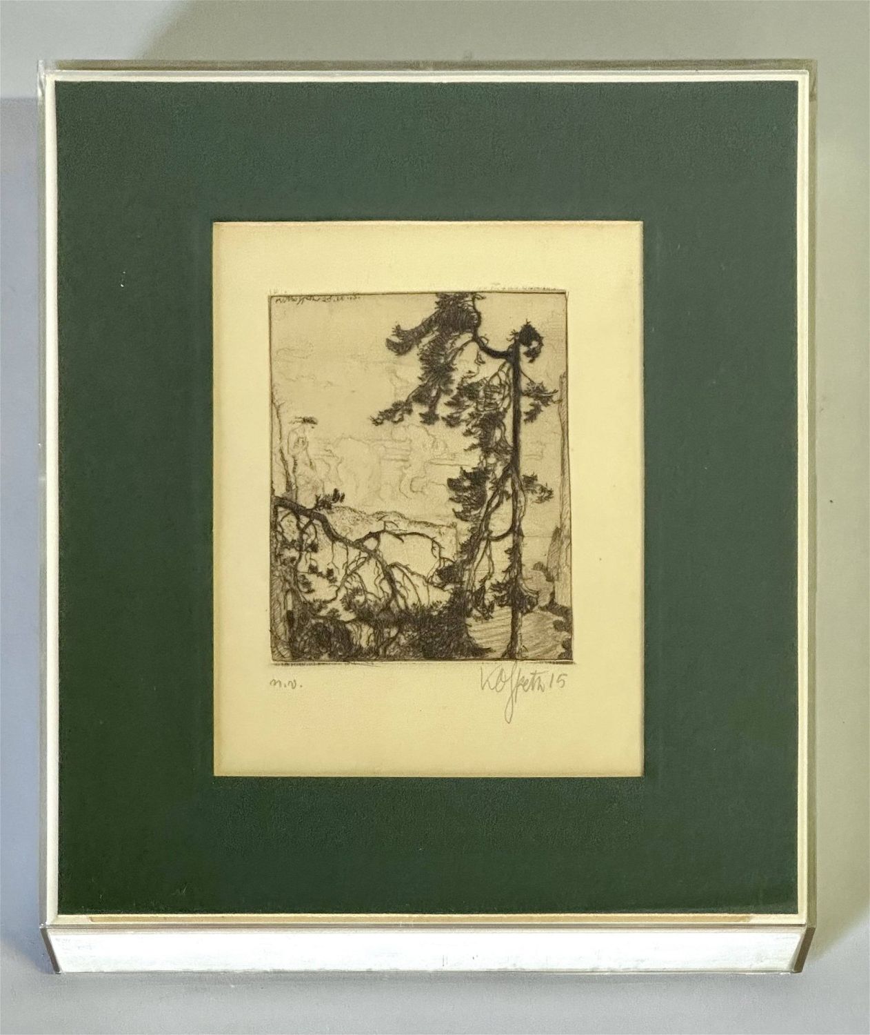Etching engraving on paper. Signed: K.O. Speth ’15 with dedication verso: To Liba Tristere "with all the admiration a man can have for a woman." Sight: 5" x 3" Frame: 10" x 8"