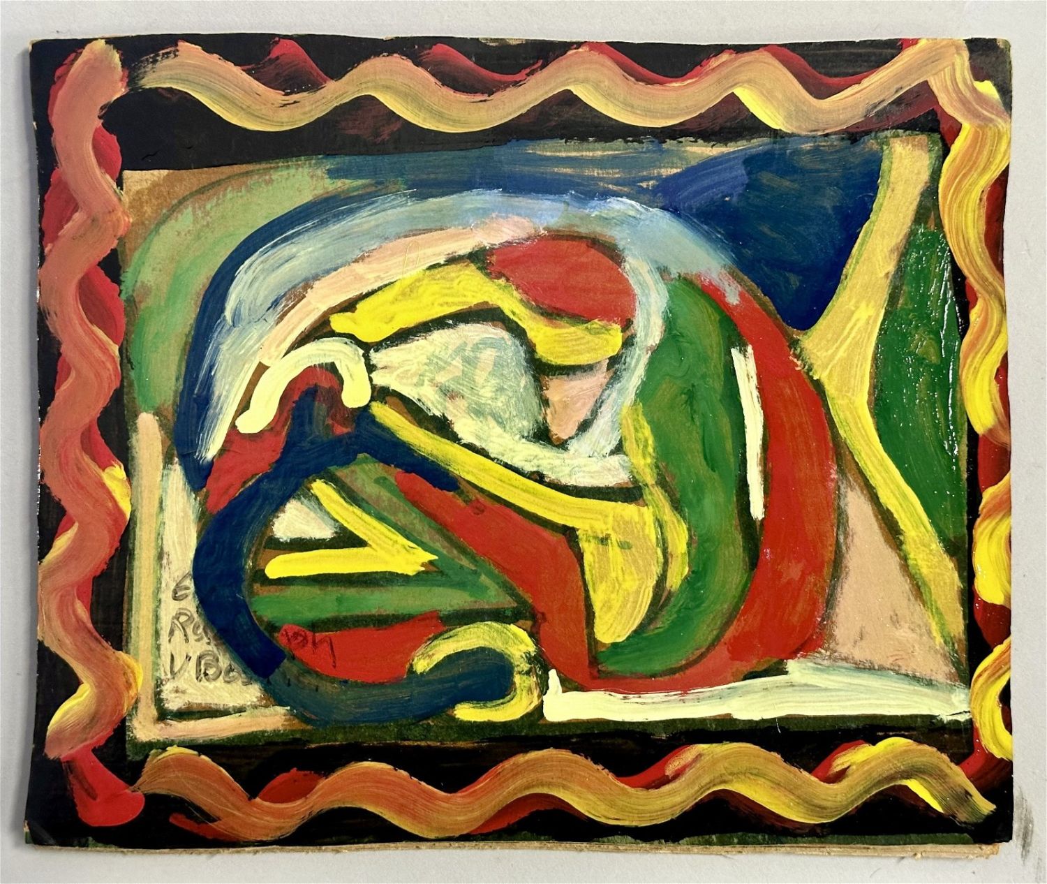 Oil on Heavy Cardboard. Signed. Size: 9.5"x11.5" Condition: Good