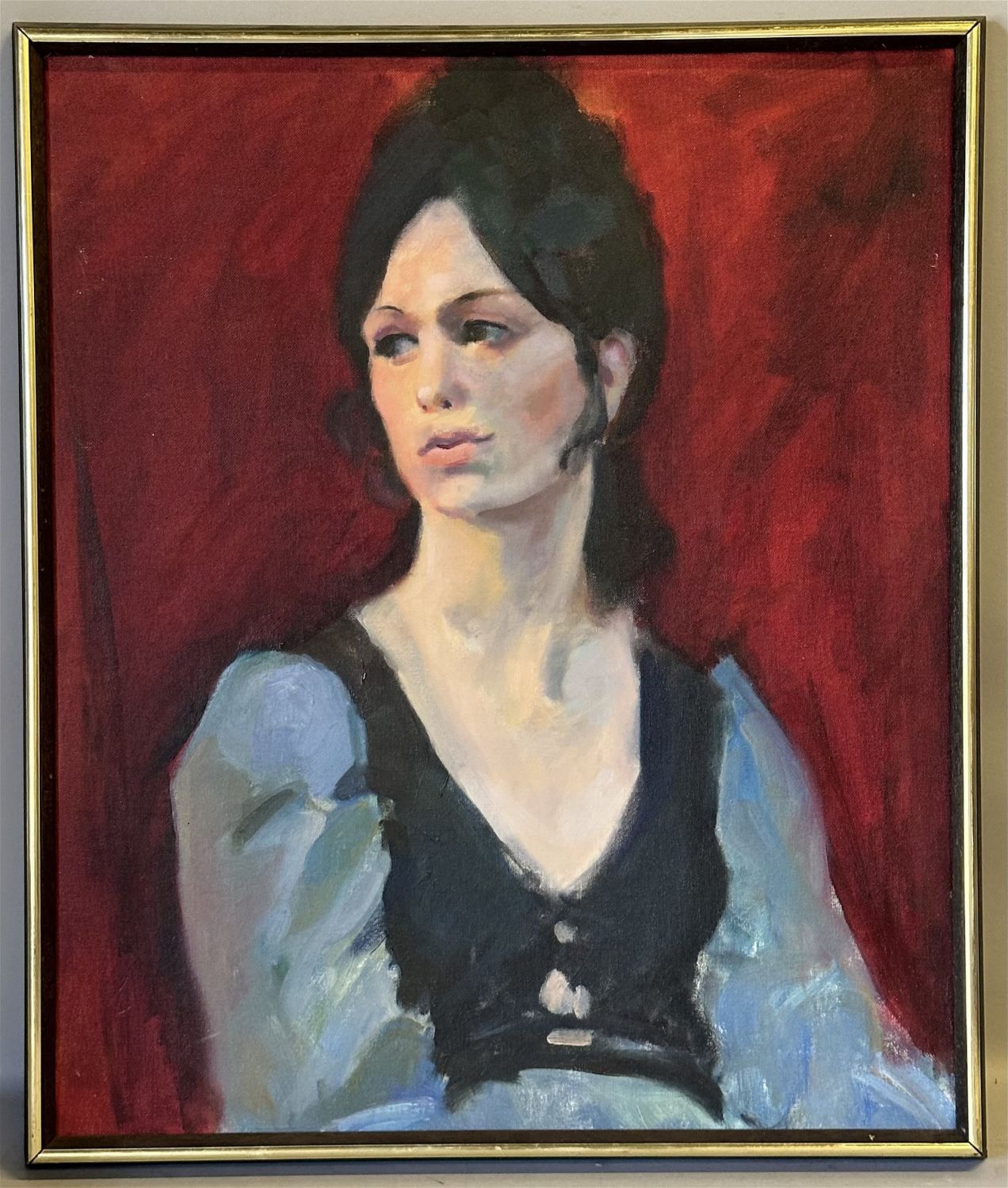 Oil on canvas. Unsigned. Sight: 24" x 20" Frame: 24" x 20.5" Condition: Good