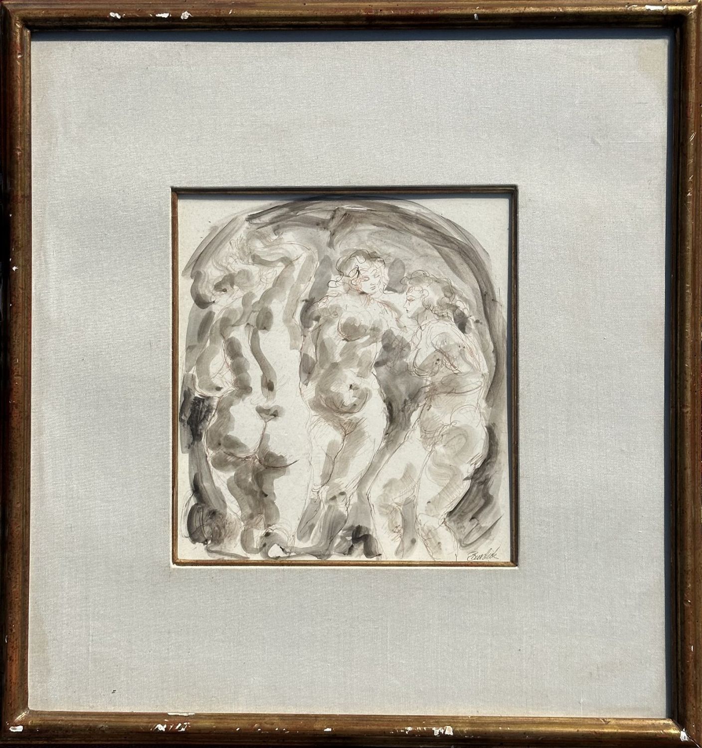 Original Pen and Watercolor on paper. Modern Eroticism. Signed Burdick. Sight 7.5"x7" Frame: 15.5" x 14.5" Condition: Good. Frame shows losses. Not examined out of frame.