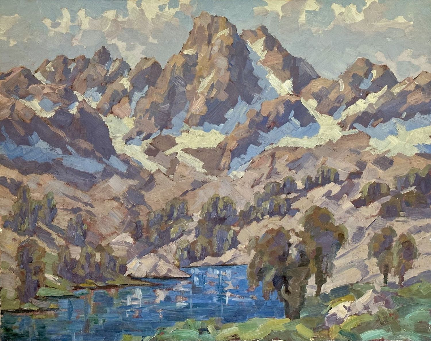 Oil on canvas. Unsigned. Mid 20th century depicting Grand Tetons Sight: 24"x 30" Condition: Good