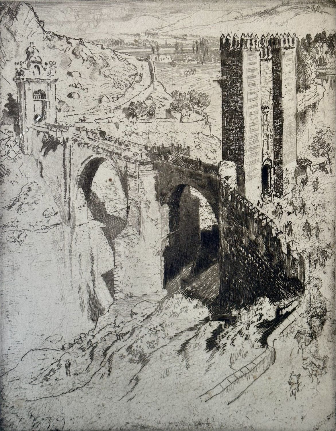 JOSEPH PENNELL (American,1858-1926) Etching "Bridge of Alcantara" A Roman Bridge in Spain.