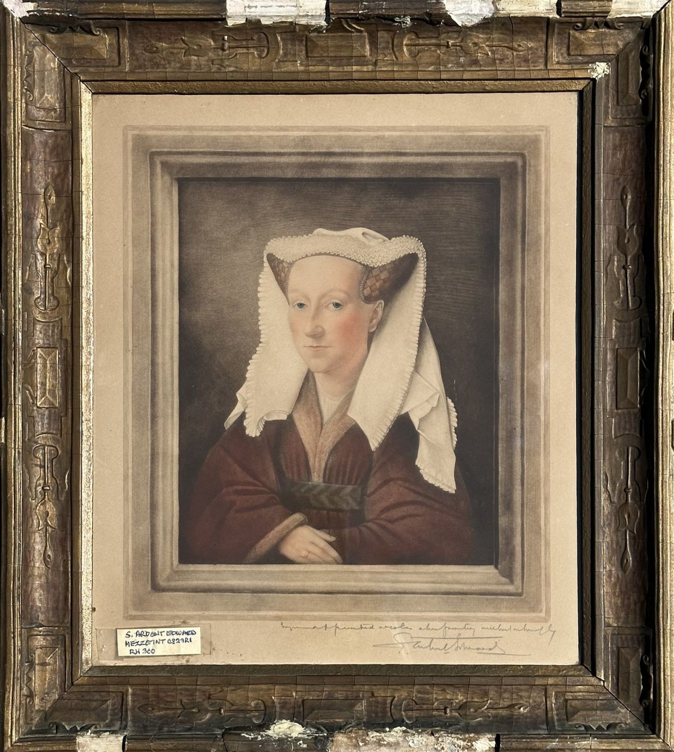 Antique mezzotint on paper. Signed and inscribed in pencil lower right. Sight 13.5"x11.5" Frame: 17.5" x 15.5"