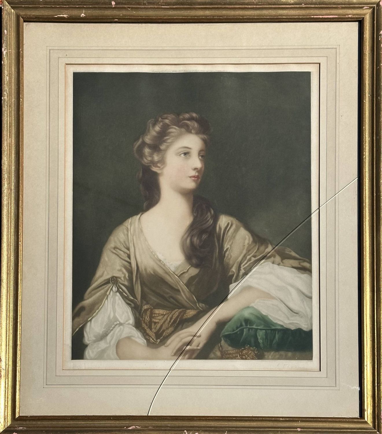 19th century Antique (After Sir Joshua Reynolds) Mezzotint Portrait of "Mrs. Greenway"