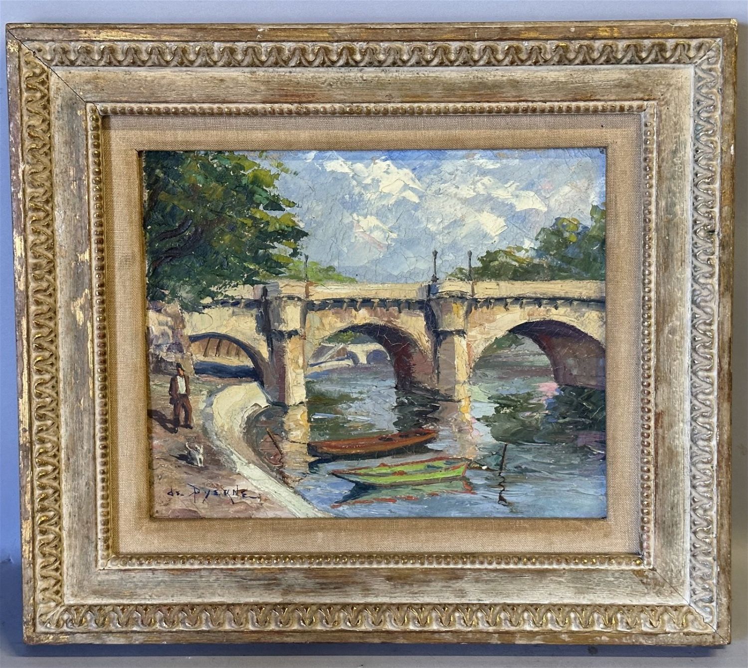 Oil on canvas. Signed lower right de Pyerne. Label verso reads: Levasseur at Cie 230 Rue De Rivoli Hotel Meurice Paris. Sight: 8.5"x10.5" Frame: 13.5"x15.5"