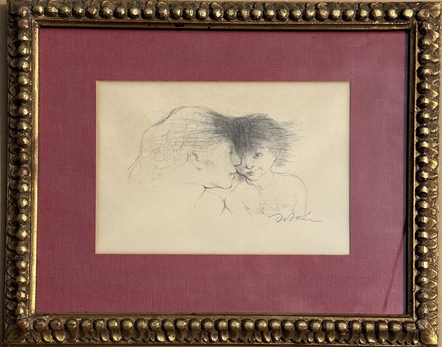 Vintage ALEXANDER DOBKIN (1908-1975) Lithograph Titled Mother and Child Gold Frame