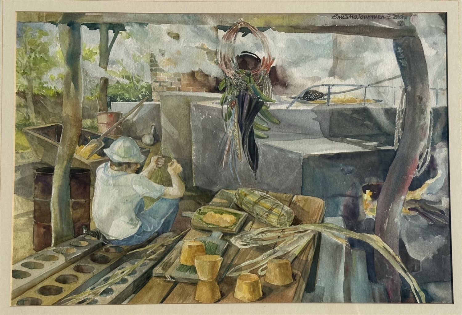 Watercolor on heavy paper. Signed upper right. Sight: 11.75"x17.5" Frame: 20"x25.5" Condition: Good