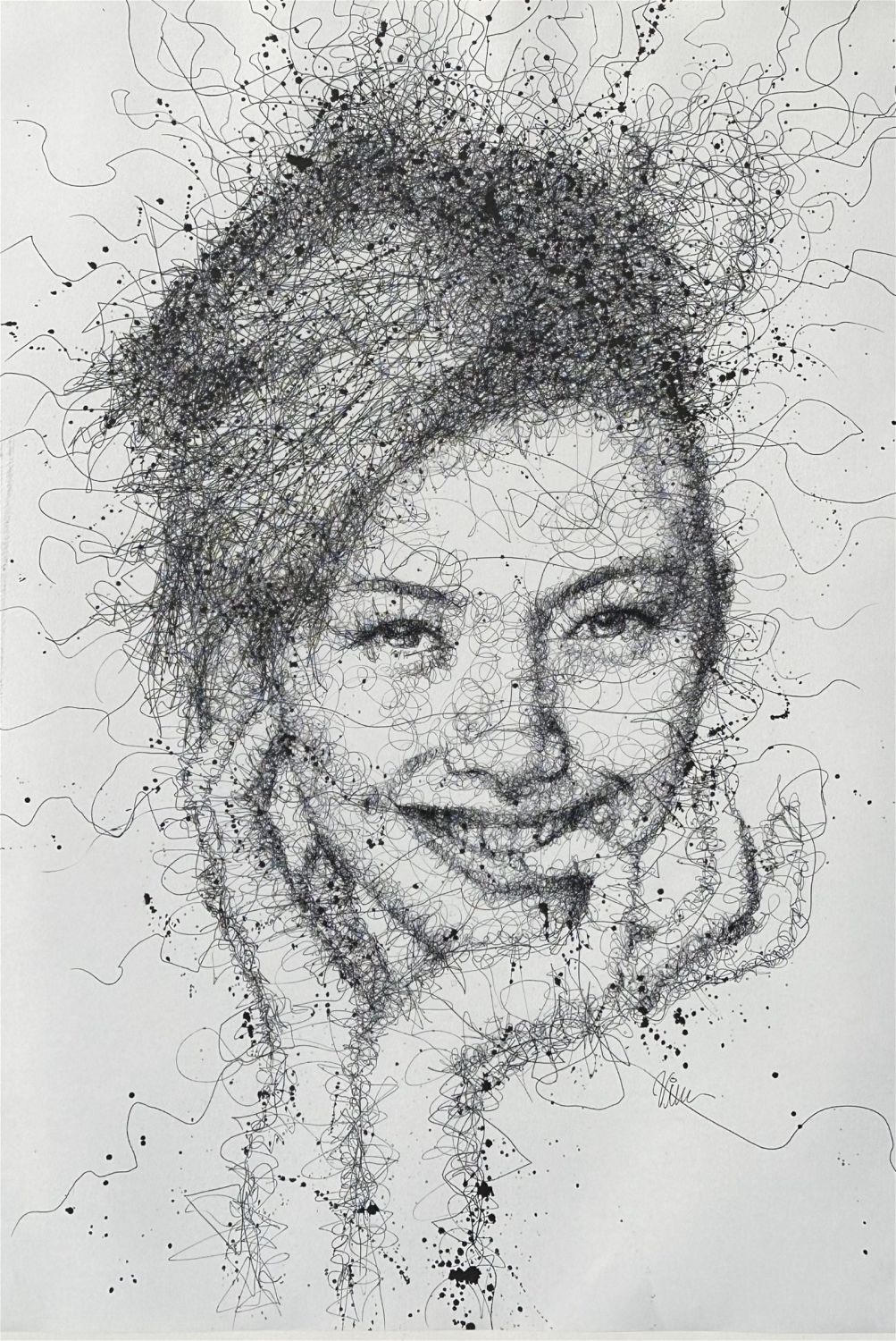 Screenprint of ink drawing on paper. Signed Illegibly. Sight: 39"x27" Frame: 42"x30" Condition: Good.