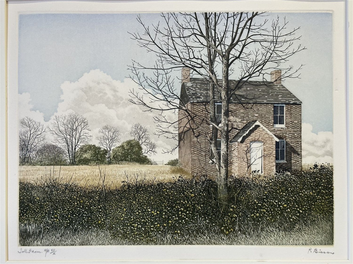 Etching lithographic print on paper. Signed in Pencil P. Bissons. Sight: 11.5"x15" Frame 20"x23.5" Condition: Good