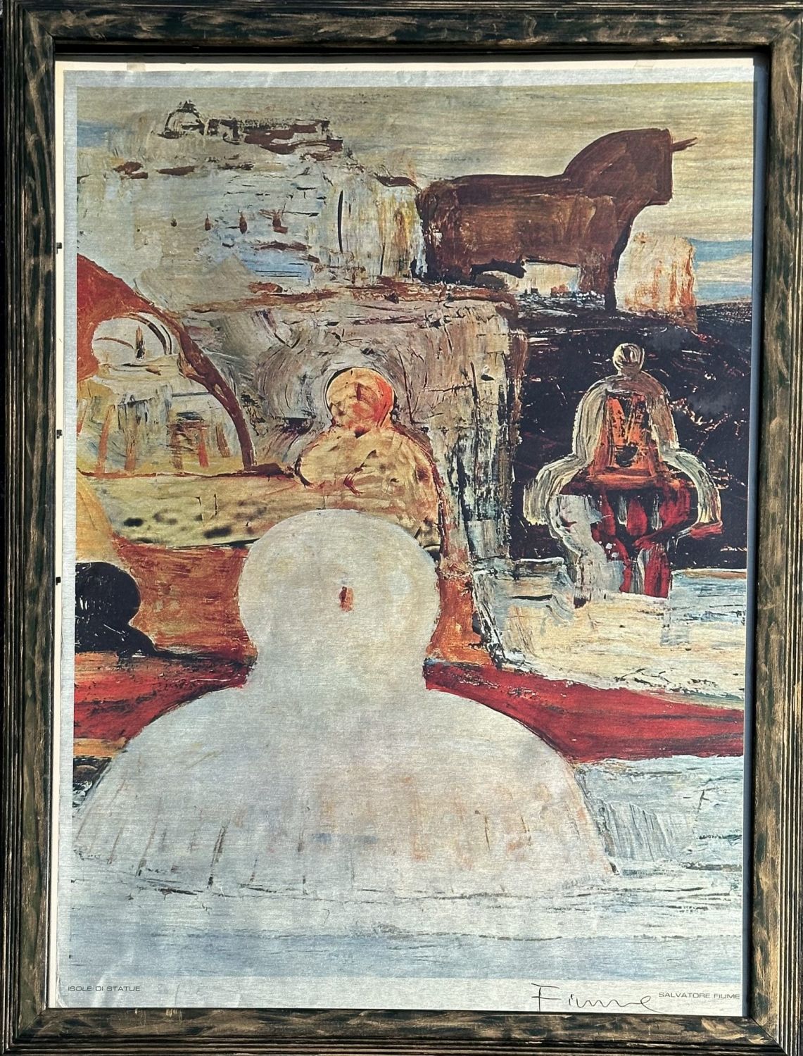 Abstract expressionist print on paper. Signed in ink, Fiumi. Sight 27.5" x 19.5" Frame: 30.5" x 22.5" Condition: Wear commensurate with age and careful handling.