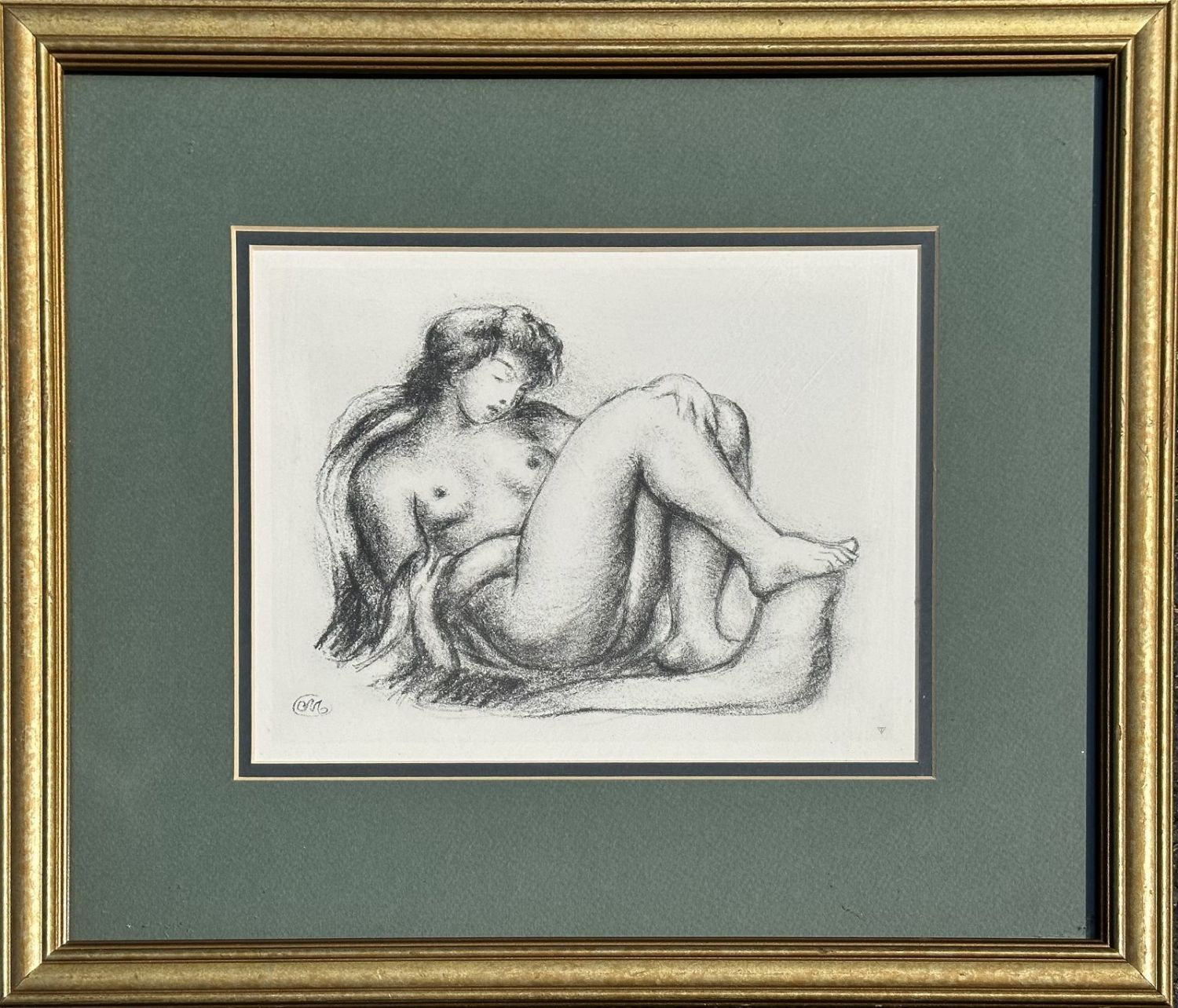 Vintage Aristide Maillol (1861-1944) Lithograph Portrait of a Nude Woman. Title: Nude on Sofa.