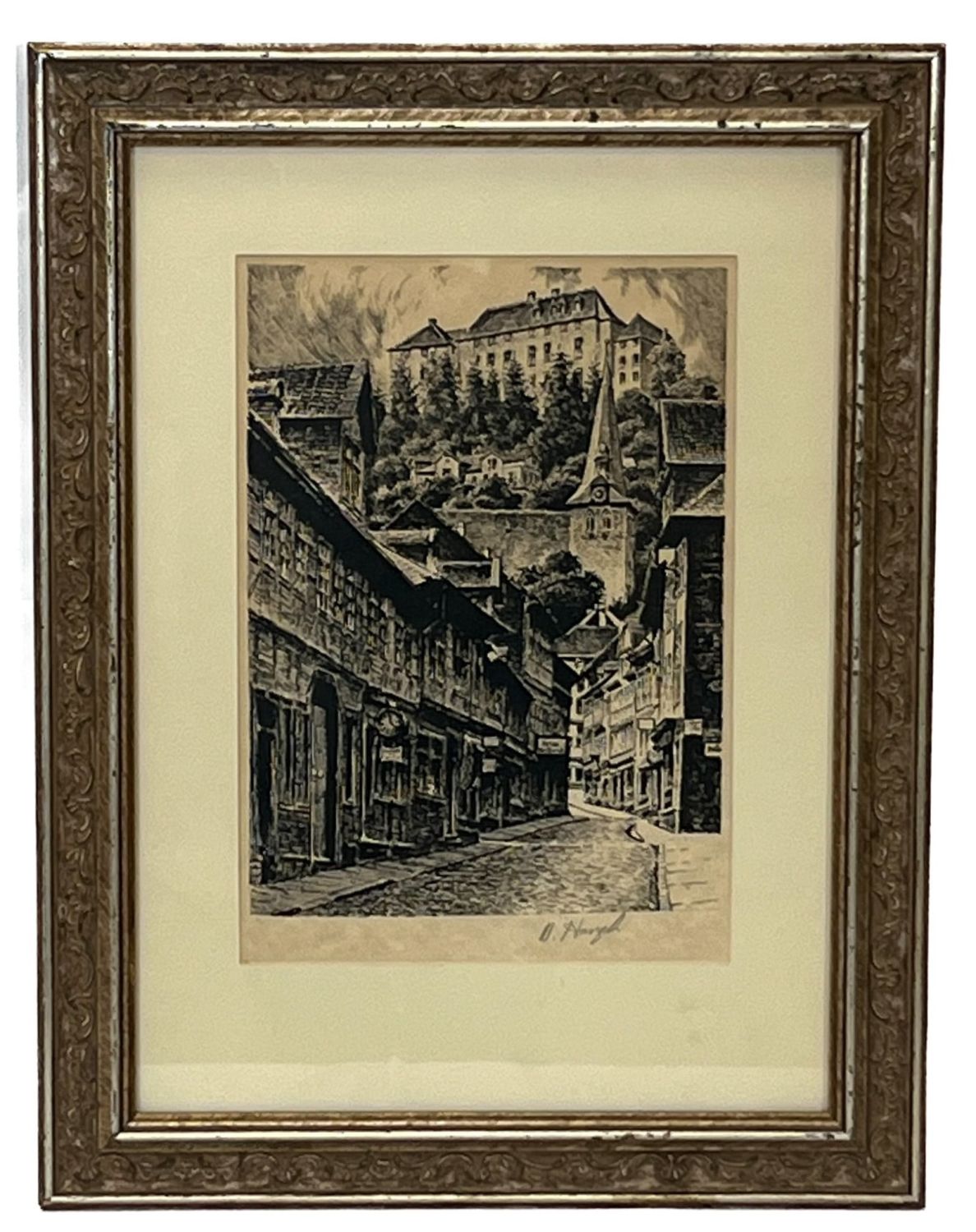 W. HANYAH, Etching Town Scene with Church