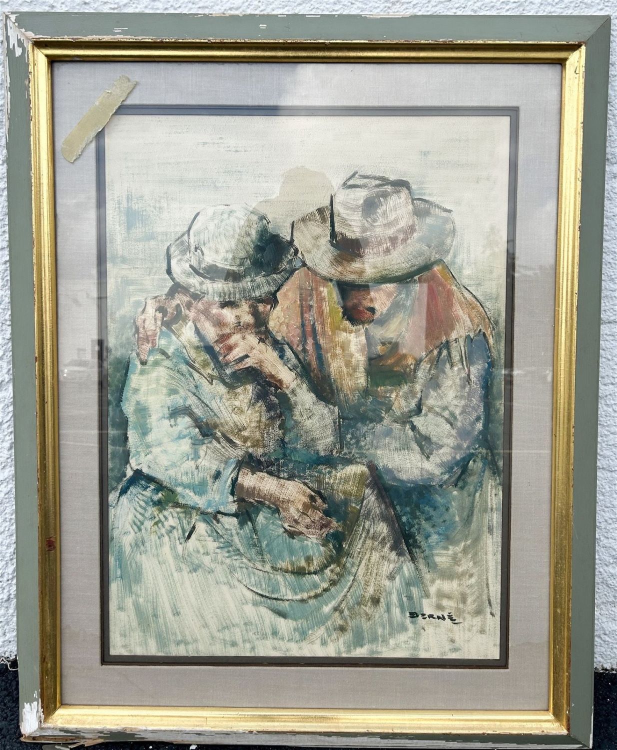 Condition: Good, some color and wood loss to the frame, tape residue on glass, not examined out of the frame