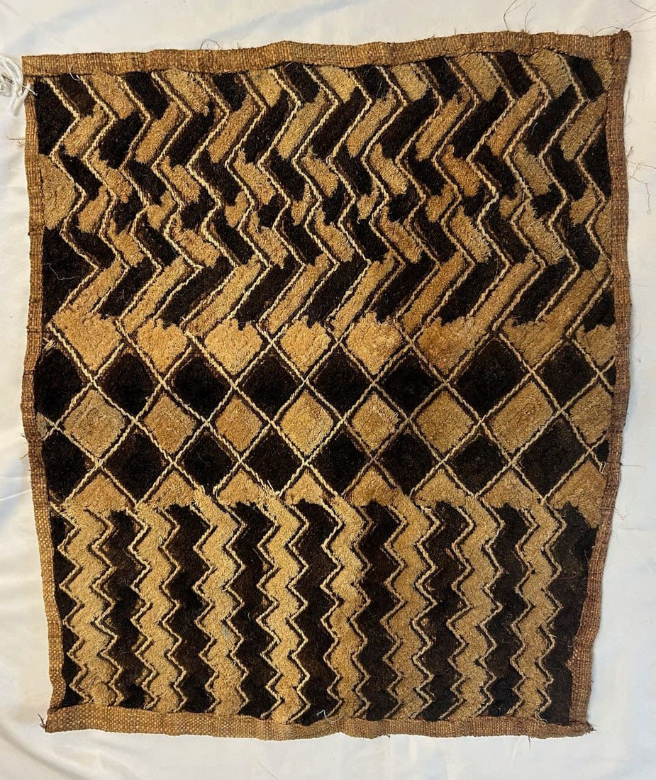 Kuba peoples, Democratic Republic of the Congo, Central Africa, cut-pile embroidered raffia textile, likely first half of the 20th century.Approximate size, 20" x 23"