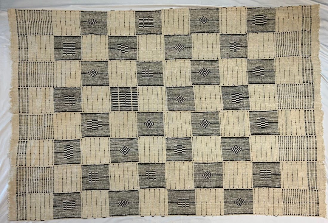 Strip woven cotton textile, thought to be from Nigeria, West Africa, likely mid-20th century. Approximate size, 81" x 56".