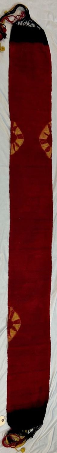 Woven belt, wool, tie-dyed, Morocco, North Africa, likely mid-20th century. Approximate size, 91" x 10.5"